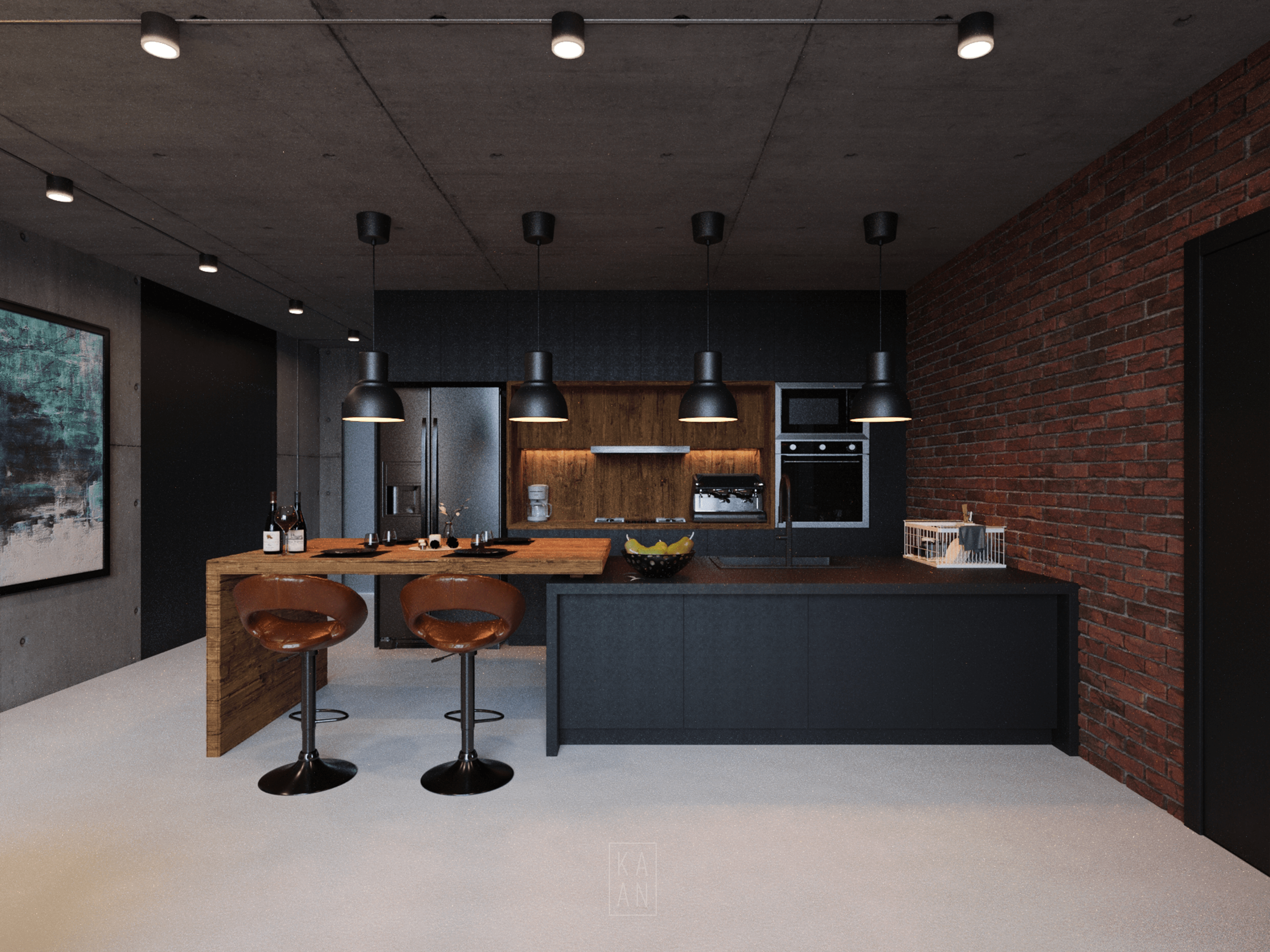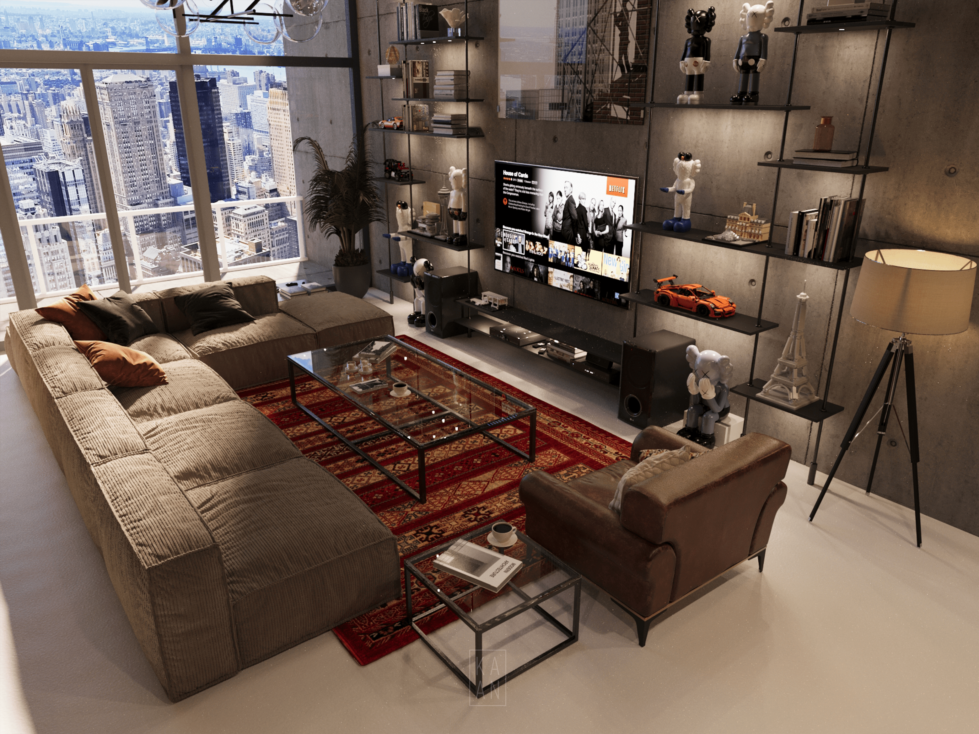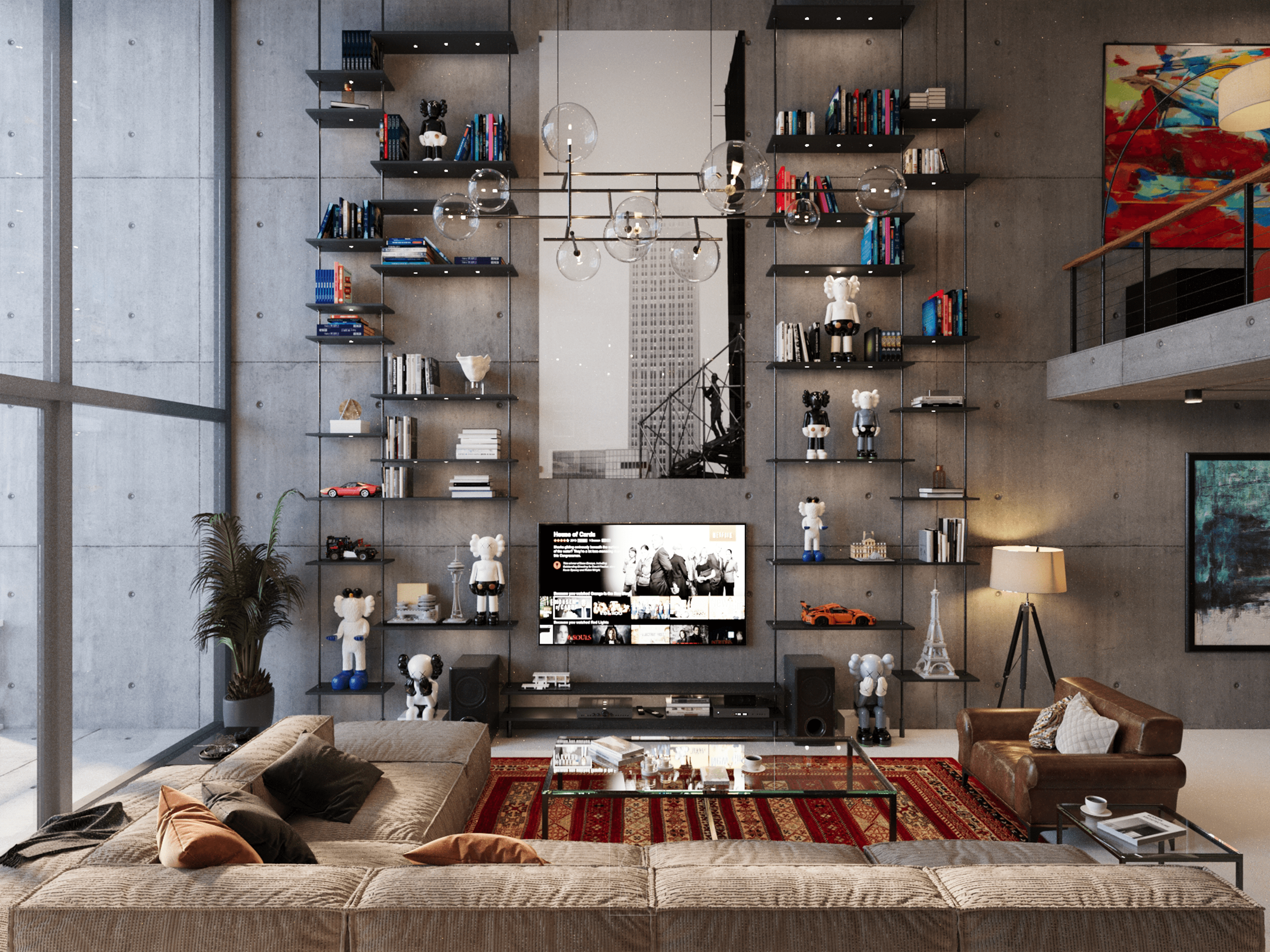 Blending modern urban living with industrial details in the heart of New York City, Skyline Loft draws attention with its large glass facades, raw concrete and brick walls. Designed with a minimalist and eclectic approach, the interior is illuminated by natural light and enriched with warm wood textures and personal artworks. Integrated with an open kitchen and comfortable seating areas, this loft offers a modern and functional living space.