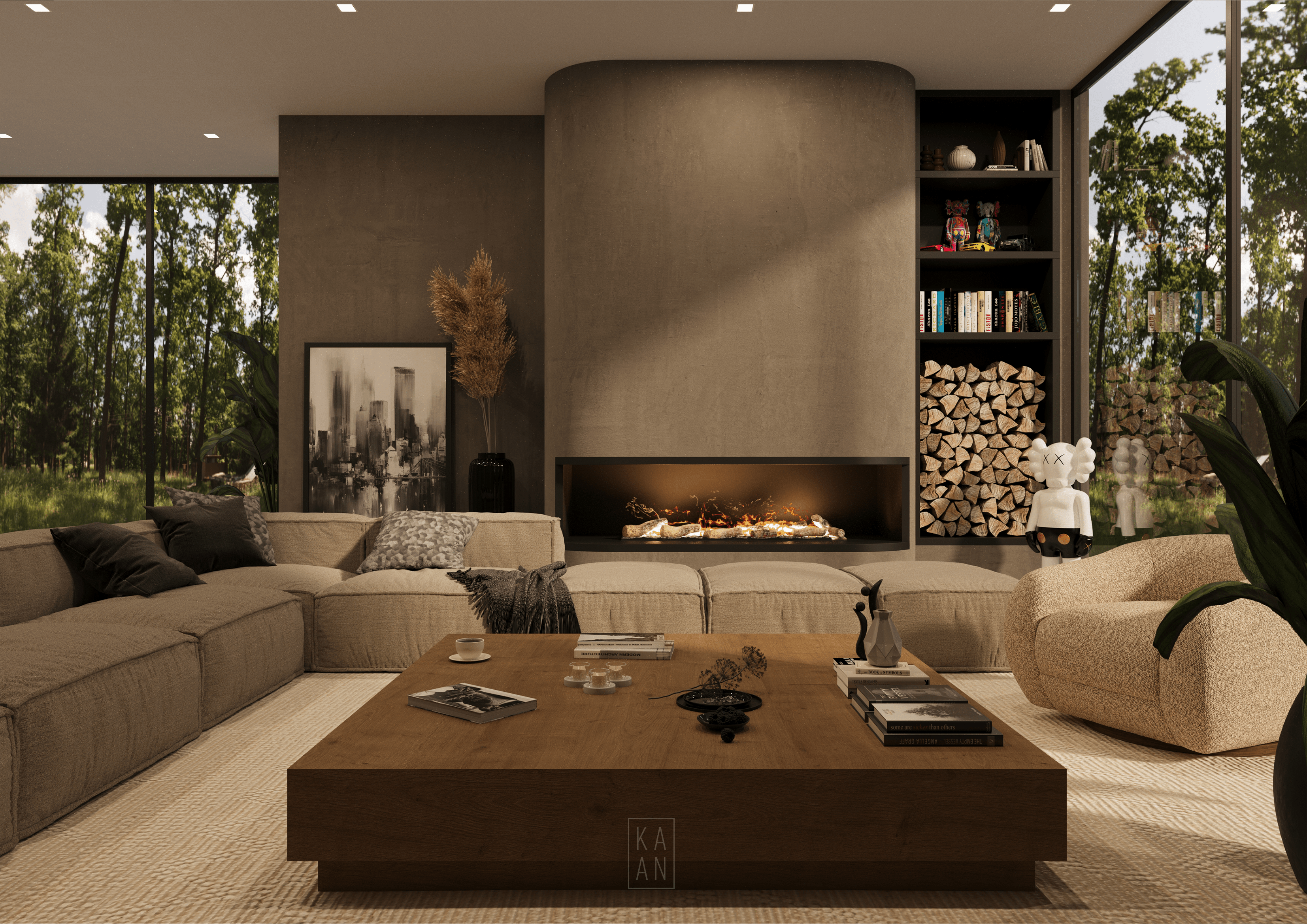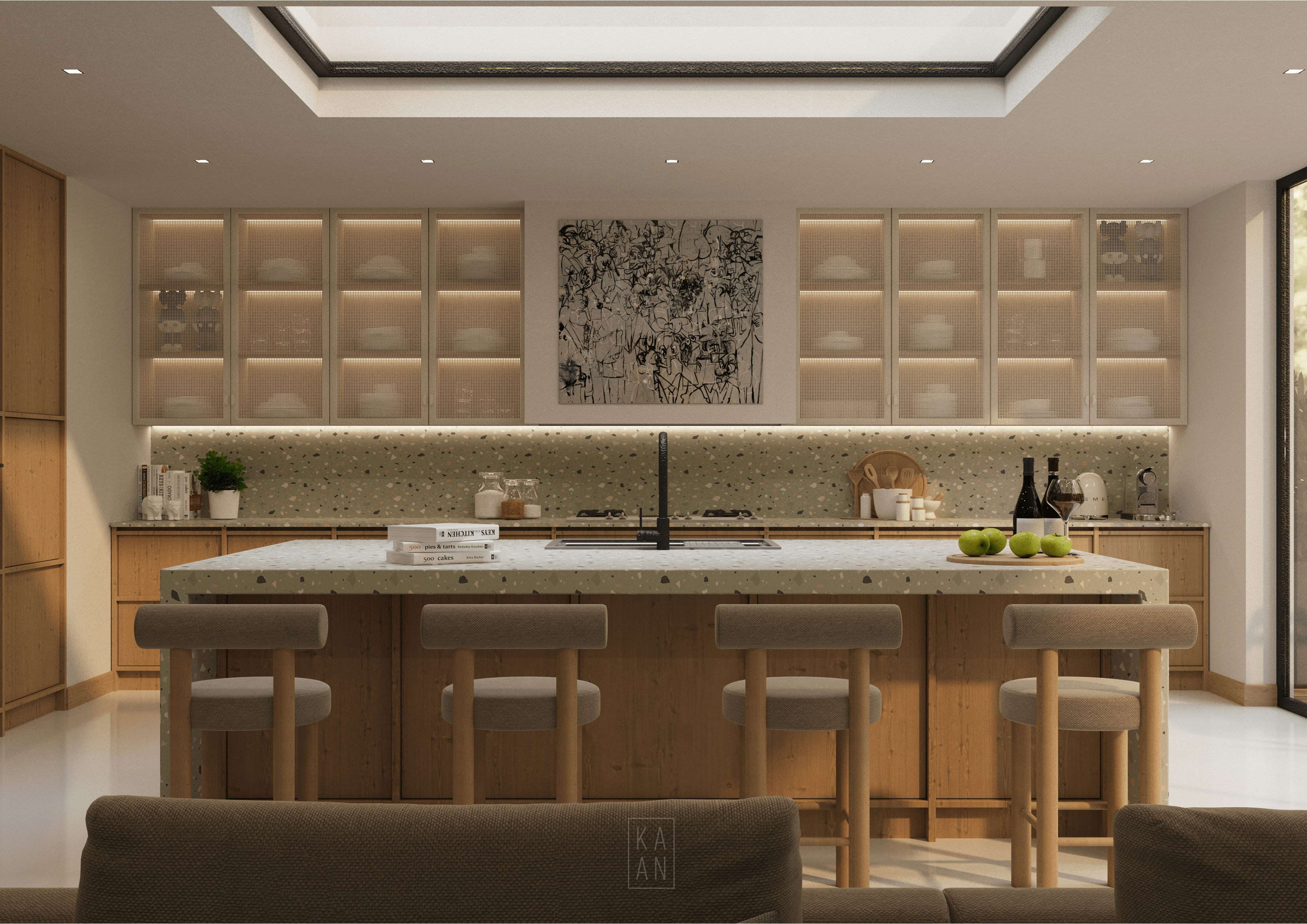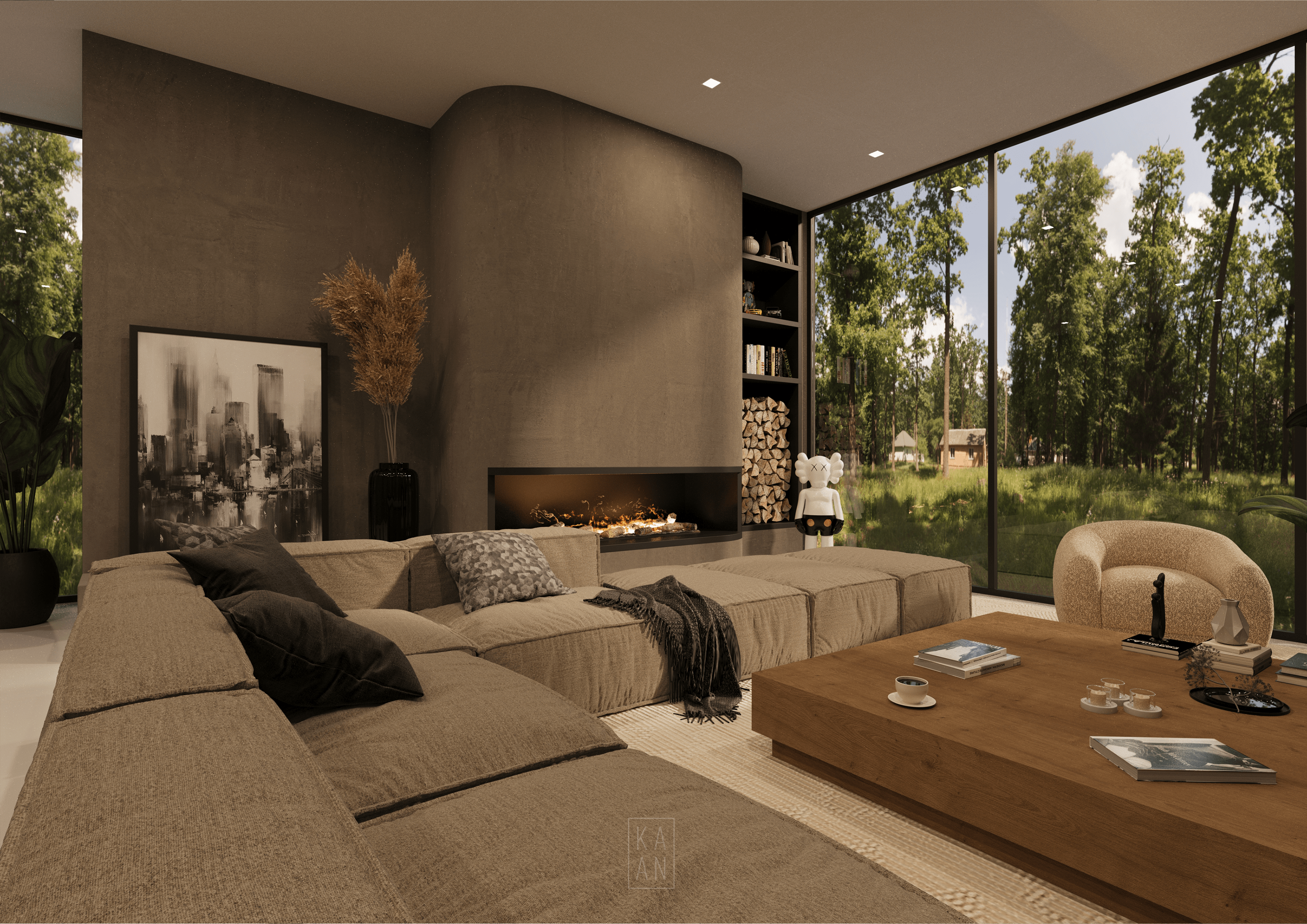 Verdant House Located in Muğla, this residential project a seamless integration of modern design principles with natural elements, creating yet inviting living space. The design emphasizes open, light-filled spaces, with a cohesive use of pastel tones throughout the interior, fostering a