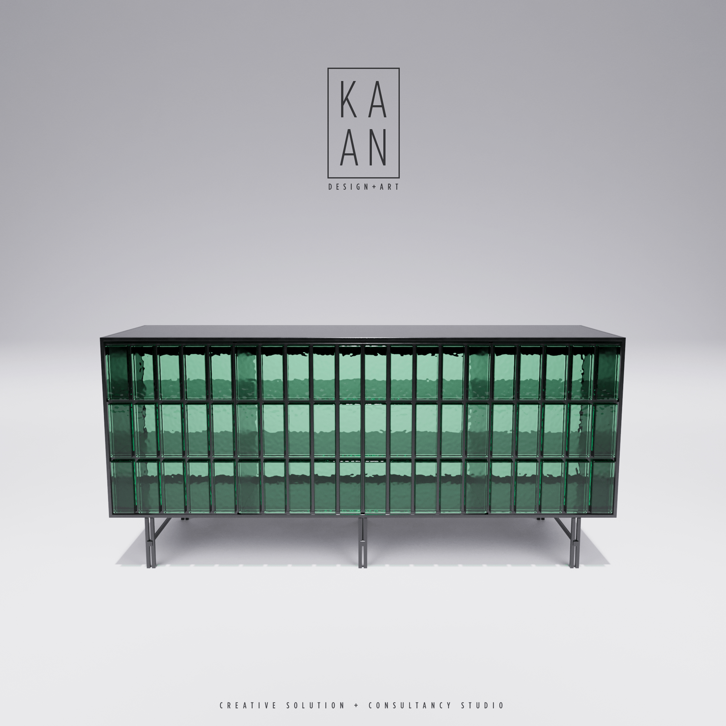 Green Glass, Oven-Painted Metal and Wooden